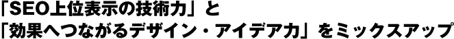 それが今回立ち上げた「SEO×DESINGプロジェクト」です。いくらYahoo!やGoogleで上位表示をしても、実際に見ていただくコンテンツ(WEBサイト)にお客様を引き付ける魅力、ブランディングを向上させるデザイン力、商品をアピールする訴求力がないと、ただ人目に触れる場所に大きな看板を掲げているだけに終わってしまいます。